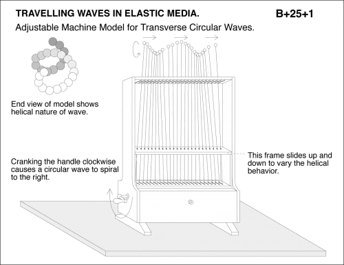 Adjustable Machine Model for Transverse Circular Waves. Cranking the handle clockwise causes a circular wave to spiral to the right.