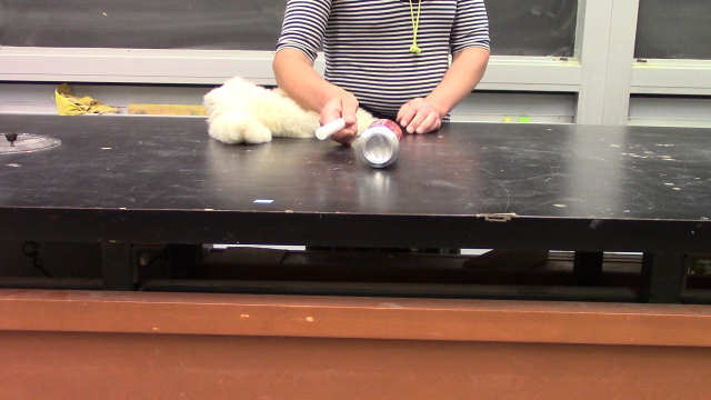 Charged rod polarizes a soda can and this pulls it in the direction of the rod. Moving the rod can pull it the opposite direction.