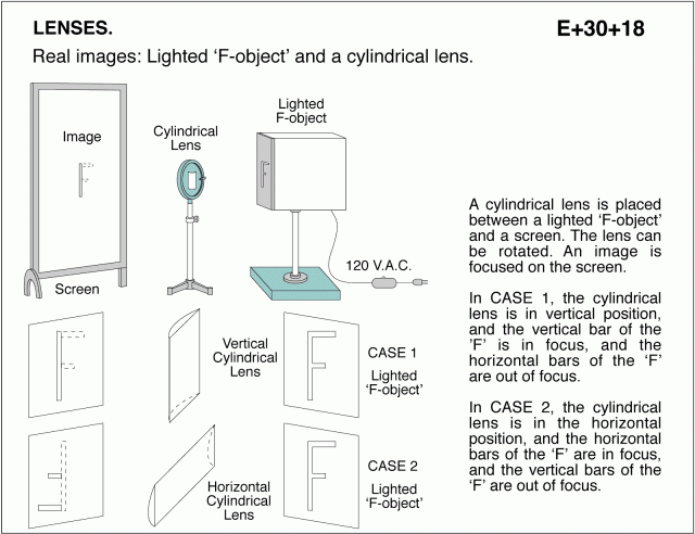 Real images: Lighted ‘F-object’ and a cylindrical lens.