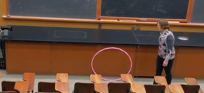 Hoop thrown forward rolls backwards