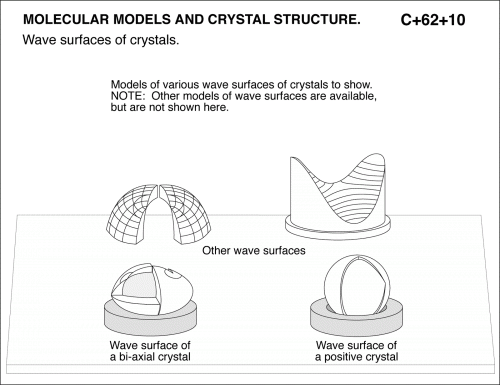 Wave surfaces of crystals. Wave surface of a bi-axial crystal Wave surface of a positive crystal Other wave surfaces Models of various wave surfaces of crystals to show. NOTE: Other models of wave surfaces are available, but are not shown here. MOLECULAR MODELS AND CRYSTAL STRUCTURE.