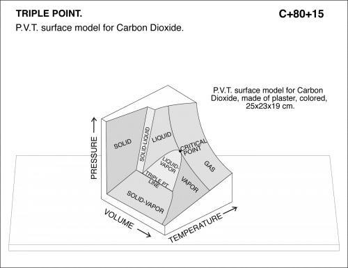 P.V.T. surface model for Carbon Dioxide. P.V.T. surface model for Carbon Dioxide, made of plaster, colored, 25x23x19 cm.