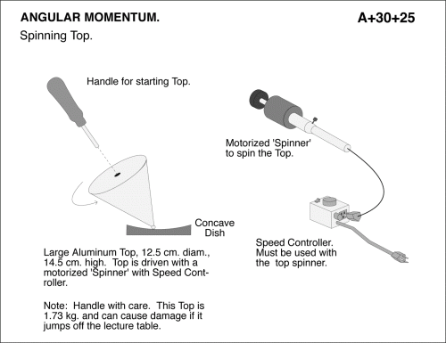 Spinning Top. Top is driven with a motorized 'Spinner' with Speed Controller. Note: Handle with care. This Top is 1.73 kg. and can cause damage if it jumps off the lecture table.